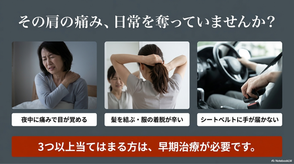 - 夜中に肩の痛みで目が覚める(夜間痛)