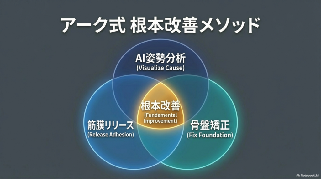 福岡市西区姪浜のアーク鍼灸整骨院では、AI姿勢分析で根本原因を特定し、進行段階に合わせた最適な治療プランをご提案します。