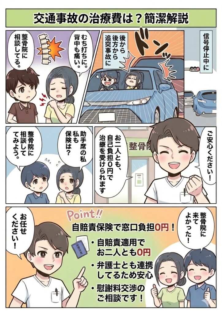 結論:自賠責保険が適用されれば、窓口負担は0円です。