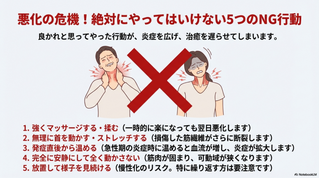 4. 絶対にやってはいけない!寝違えのNG行動5選